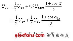 當(dāng)α3=π時(shí),Ud3=0.75Ud0 ;α3=0時(shí),Ud3=Ud0。