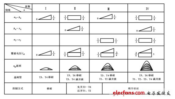 四段經(jīng)濟(jì)橋的整流電路結(jié)構(gòu)與三段不等分橋相同,只是采取的控制順序與三段不等分橋不同,四段橋的控制順序如下: