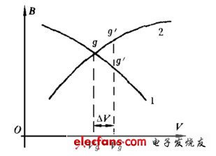 以圖3-1為例對機械穩(wěn)定性條件進行分析。設(shè)在電氣制動工況下,機車在g點穩(wěn)定運行,若現(xiàn)有一偶然因素使速度V有一增量ΔV,則對曲線1,由于其斜率為負,此時制動力Bg'
