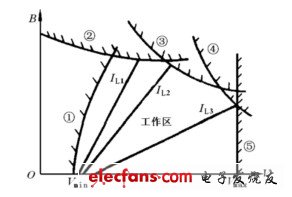 再生制動(dòng)時(shí),機(jī)車特性的限界為:1--最大勵(lì)磁電流限制線;2--粘著條件限制線; 3--最大電樞電流限制線;4--安全換向限制線;5--最大速度限制線。故機(jī)車再生制動(dòng)時(shí)的工作范圍在上述五條限制線限定的范圍內(nèi),如圖3-20所示。