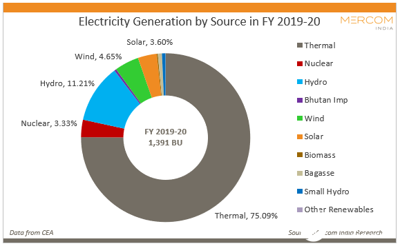 在2019-20財(cái)年,包括熱能,核能,水能,生物質(zhì)能,甘蔗渣發(fā)電,風(fēng)能,太陽能和其他可再生能源在內(nèi)的所有來源的發(fā)電量總計(jì)達(dá)到13910億單位。