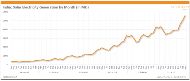2020年3月的太陽能發(fā)電量為56億單位。 2020年1月-2月,太陽能發(fā)電分別為46億單位和50億單位。去年,即2019年3月,太陽能發(fā)電量為43億單位。