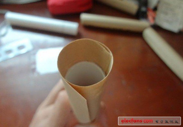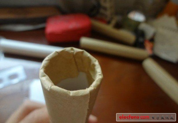 把裁開的牛皮紙卷到剛剛鋸好的PVC管上