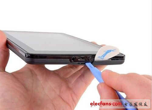 得益于亞馬遜良好的模塊化設(shè)計,Kindle Fire拆起來非常方便,只需要簡單的塑料拆機工具和一個吉他撥片,就可以把后蓋打開。不過對于精密電子產(chǎn)品來說,還是找專業(yè)維修人員拆解較好。