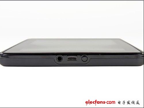 電源鍵是Kindle Fire平板上唯一的按鍵,位于Kindle Fire平板底部。Kindle Fire平板采用了和iPad 2類似的接口配置,單一接口實現(xiàn)數(shù)據(jù)傳輸和充電功能。
