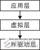 應(yīng)用層處于模塊的最上層,直接用于功能的實(shí)現(xiàn),比如,應(yīng)用層對外只有一個“人機(jī)交互”模塊,當(dāng)然內(nèi)部還可以劃分幾個模塊供自己使用。三層之間數(shù)據(jù)傳遞的關(guān)系非常清晰,即應(yīng)用層->虛擬層->硬件驅(qū)動層,詳見圖 2.2,圖中的實(shí)線代表依賴關(guān)系,即應(yīng)用層依賴于虛擬層,虛擬層依賴于硬件驅(qū)動層?;诜謱拥募軜?gòu)具有以下優(yōu)點(diǎn):
