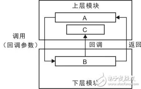 在上層模塊A調(diào)用下層模塊B的函數(shù)中,直接調(diào)用回調(diào)函數(shù)C;