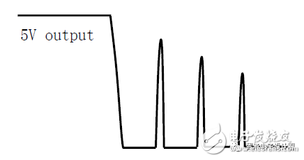 現(xiàn)象:在輸出空載或輕載時(shí),關(guān)閉輸入電壓,輸出(如5V)可能會(huì)出現(xiàn)如下圖所示的電壓反跳的波形。