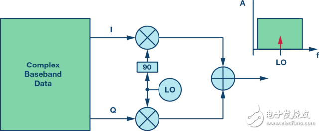 復數(shù)混頻器架構適用于生成抵消信號。由于混頻器中存在LO頻率的正交信號(它們是復數(shù)混頻器如何工作的關鍵),因此允許生成任何相位和幅度的LO頻率信號。