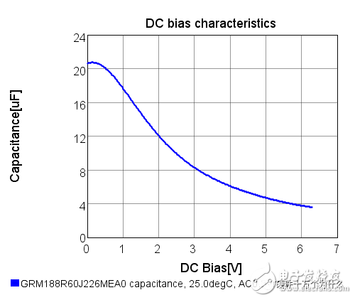 以Murata一款22uF、6.3V、X5R電容為例,相關(guān)特性曲線: