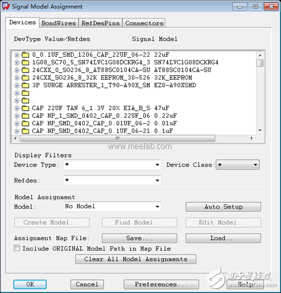 然后點(diǎn)擊需要設(shè)置模型的器件,通常就是串聯(lián)匹配電阻,分配或創(chuàng)建合適的仿真的模型,如果不知道如何創(chuàng)建,請(qǐng)?jiān)诨ヂ?lián)網(wǎng)上搜索或發(fā)郵件給無(wú)線時(shí)代(Beamsky)。