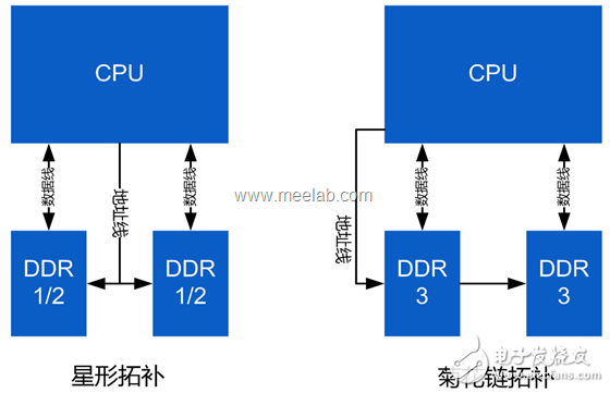 首先要確定DDR的拓補(bǔ)結(jié)構(gòu),一句話,DDR1/2采用星形結(jié)構(gòu),DDR3采用菊花鏈結(jié)構(gòu)。