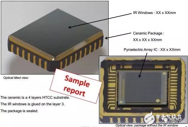 IRISYS熱釋電陣列傳感器REDEYE-6A部分工藝流程REDEYE-6A的分辨率較低,僅為31 x 31像素,但是其針對(duì)不需要高清晰度和高刷新率的低成本應(yīng)用做了優(yōu)化?;谙嗤臒後岆娞沾杉夹g(shù)的高清晰度陣列傳感器的分辨率可達(dá):47 x 47像素。IRISYS開(kāi)發(fā)了一種通過(guò)標(biāo)準(zhǔn)光學(xué)傳感器來(lái)補(bǔ)償?shù)头直媛始t外傳感器的系統(tǒng),并且還可以將可見(jiàn)成像與熱成像進(jìn)行融合。本報(bào)告對(duì)紅外熱釋電陣列傳感器REDEYE-6A進(jìn)行詳細(xì)地逆向分析,并給出制造工藝流程,以及成本和價(jià)格預(yù)估。