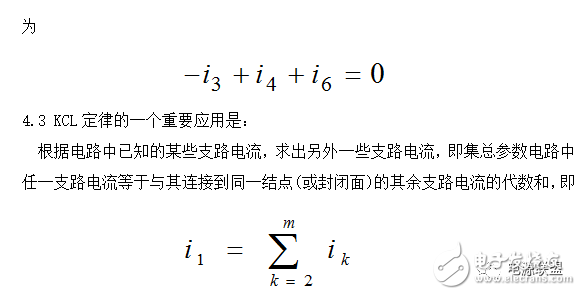 基爾霍夫電流定律又稱節(jié)點電流定律(KCL) 任一集總參數(shù)電路中的任一節(jié)點,在任一瞬間流出(流入)該節(jié)點的所有電流的代數(shù)和恒為零,即就參考方向而言,流出節(jié)點的電流在式中取正號,流入節(jié)點的電流取負號?;鶢柣舴螂娏鞫墒请娏鬟B續(xù)性和電荷守恒定律在電路中的體現(xiàn)。它可以推廣應用于電路的任一假想閉合面。