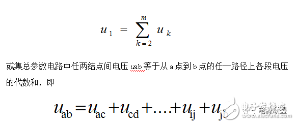 集總參數(shù)電路中任一支路電壓等于與其處于同一回路(或閉合路徑)的其余支路電壓的代數(shù)和,即