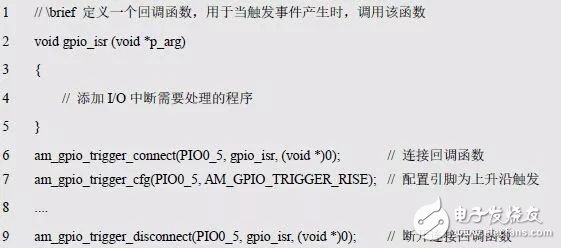 程序清單5.18 am_gpio_trigger_connect()范例程序