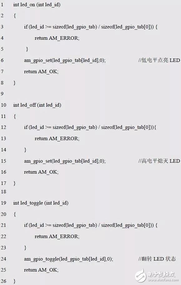 程序清單5.6 am_gpio_toggle()范例程序