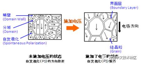 圖2:向鐵電體陶瓷施加電壓時的狀態(tài)
