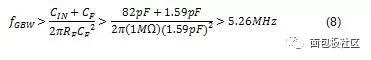 我們可通過讓反饋電容器等于或小于公式 3 計算得到的值,來確保電路滿足帶寬要求。