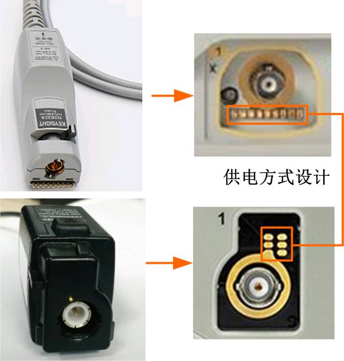 圖3的無源探頭可用于大部分示波器的信號(hào)輸入,圖4的探頭因?yàn)樵诮Y(jié)構(gòu)上設(shè)計(jì)獨(dú)特,且其需要供電,所以僅適用于與其兼容的示波器輸入。