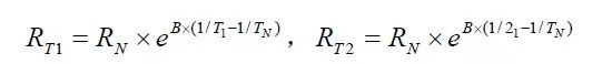 根據(jù)T1、RT1、T2、RT2 和溫度與電阻值的關(guān)系式,可以得到: