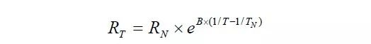 其中,RT 是在溫度T(單位為K,即開爾文)時的NTC 熱敏電阻阻值,RN 是在額定溫度TN(K)的NTC 熱敏電阻阻值,B 為NTC 熱敏電阻的材料常數(shù),又叫熱敏指數(shù)。由于該關(guān)系式是經(jīng)驗公式,因此只在額定溫度 TN 或額定電阻阻值 RN 的有限范圍內(nèi)才具有一定的精確度。