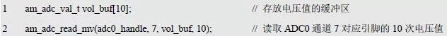 其中p_mv 是指向存放電壓值的緩沖區(qū),類型am_adc_val_t 在am_adc.h 中定義,即: