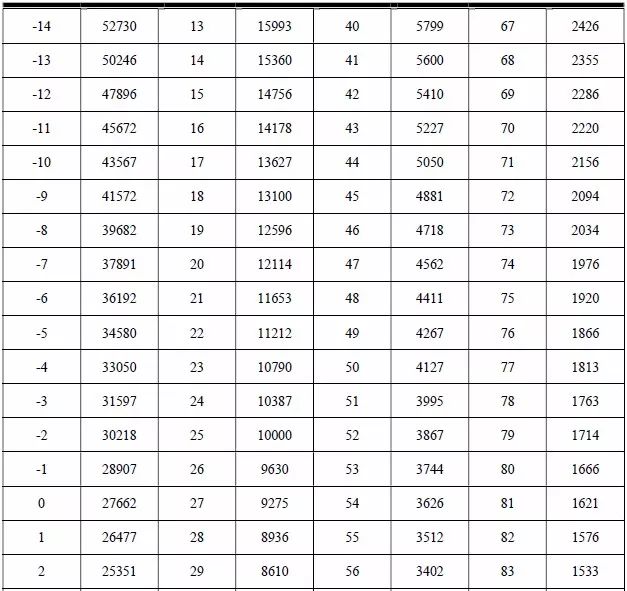 由此可見,上述計算過程是非常繁瑣的,且還要涉及到復雜的指數(shù)運算,所以往往會采用查表法。即先將各個溫度對應的電阻值存儲到一個表格中,當需要使用時直接查表即可。