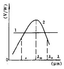 曲線1:熱電傳感器的電壓響應(yīng)率曲(與波長無關(guān))。
