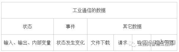 工業(yè)通信主要是過程數(shù)據(jù)、狀態(tài)變量、維護(hù)等,數(shù)據(jù)分類如下表所示: