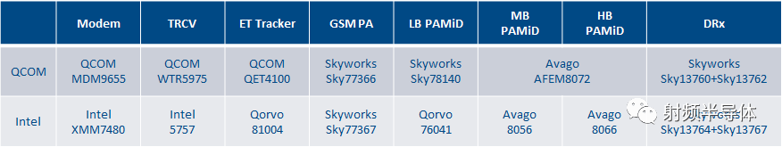 intel Modem XMM7480 + Intel TRCV 5757, ET tracker是Qorvo的81004