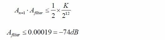 然后,計(jì)算使得基波幅度小于1/2LSB 的衰減倍數(shù)Afilter。