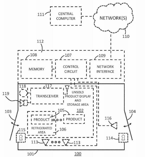 你以為 AmazonGO 無人商店就很厲害了嗎?身為亞馬遜的死對頭,沃爾瑪不僅用飛快的腳步在電子商務(wù)追趕亞馬遜,同時也把腦筋動到無人商店上,發(fā)表新專利,要把無人實體店直接帶進(jìn)你家!這項專利概述了適用于消費者住宅內(nèi)的“無人零售店面”的工具和系統(tǒng),使消費者可以從安裝在墻上零售店面直接瀏覽、選購商品。你或許會驚呼:這不就是擺一臺自動販賣機在家里嗎?概念上的確如此,但在科技的幫助下,它看起來更聰明、更好用,而且更符合你的需求。根據(jù)專利說明,這套系統(tǒng)是嵌入式結(jié)構(gòu)(可能就是嵌在你家的墻上),由“展示區(qū)”和“儲存區(qū)”兩個區(qū)域組成,其中一個或兩個區(qū)域都可以冷藏,這代表除了其他不易腐爛的商品之外,連食物和飲料也能儲存。另外這套系統(tǒng)也可隨時由零售商或物流商(甚至可能是無人機),在消費者住宅外處補貨。當(dāng)然,消費者消也可以隨時將未使用的商品放回貨架退貨。