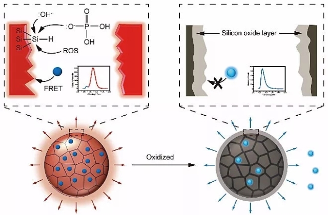 圖1. 多孔硅在堿催化氧化作用下的熒光變色機(jī)理