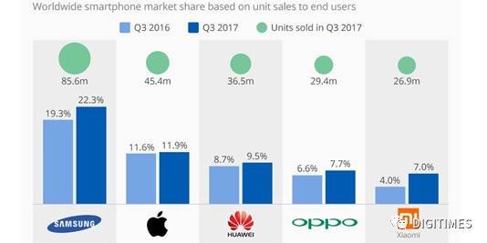 原文標(biāo)題:【供應(yīng)鏈】三星、小米回魂 Gartner:2017Q3五大智能手機(jī)品牌均增長(zhǎng)