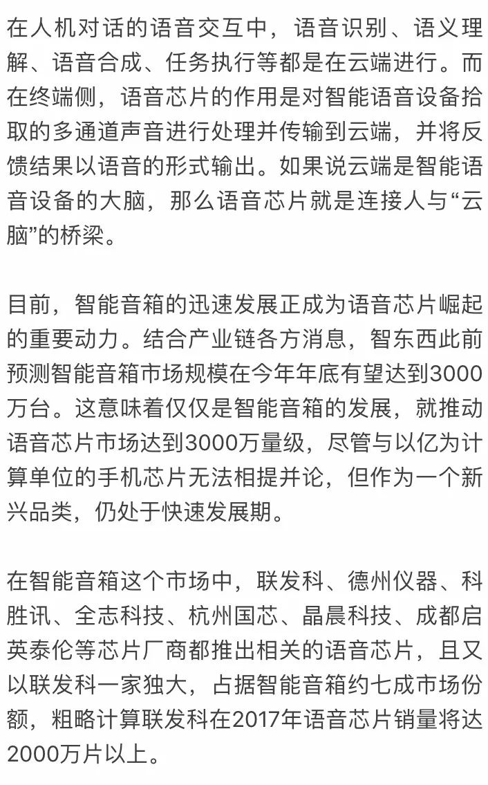 看點:隨著語音交互走向爆發(fā),一個新興行業(yè)、數(shù)十家芯片公司宣告語音芯片的崛起。