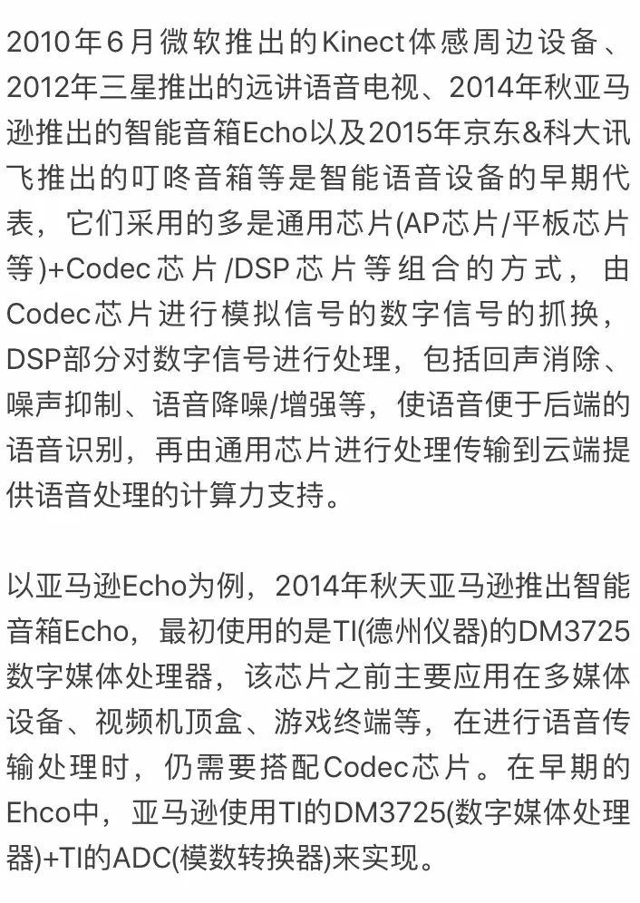 在語音交互場景的早期,智能設備并無太多銷量,即使看到了這一潛在機會,研發(fā)一款專用芯片的時間成本、投資成本都決定了在最初一段時間,智能設備需要使用通用芯片或其他芯片作為過渡期。