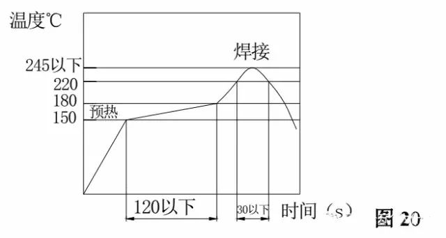 5.8.3 運輸請確保在運輸過程中,繼電器不會因受到振動等因素而脫落,以避免因此產生的焊接不良。5.8.4 回流焊接圖 20 顯示了紅外線回焊時印制板板面的溫度曲線,但得各繼電器的條件可能會有所不同,因此請參閱各繼電器的說明書,如果說明書中沒有聲明,可以使用圖示溫度曲線。