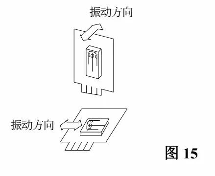 4.4.4 高溫、高濕環(huán)境請注意繼電器長時間(含運輸期間)處于高溫、高濕中時,觸點表面易生成氧化膜,導致接觸不穩(wěn)定和觸點故障,其它金屬零件也容易發(fā)生氧化或銹蝕,從而產生功能障礙。4.4.5 表面貼裝型(SMT 型)繼電器的環(huán)境SMT 型繼電器對濕度比較敏感,因而采用了防濕包裝,保管時請注意以下幾點:(1)防濕包裝袋開封后,請盡早使用。(2)防濕包裝袋開封后若需長期保管,建議使用有濕度控制的干燥器。5 外形和安裝5.1 關于底視圖與頂視圖一般從繼電器的 PCB 引出端面投影得到的是底視圖,而從它的反方向(即繼電器外殼頂面)投影得到的是頂視圖。請在使用產品說明書和安裝繼電器時注意。5.2 安裝方向除非另有說明,否則一般繼電器的安裝方向為任意方向,但為使繼電器更為穩(wěn)定和可靠的工作,安裝方向也是需要良好考慮的。5.2.1 耐振動沖擊性比較理想的安裝方法是使觸點的動作方向及銜鐵的動作方向與振動沖擊方向成直角。尤其是在線圈未通電的狀態(tài)下,常閉觸點的耐振耐沖擊性較弱,如果安裝方向適當將能保證它的性能。如圖 15