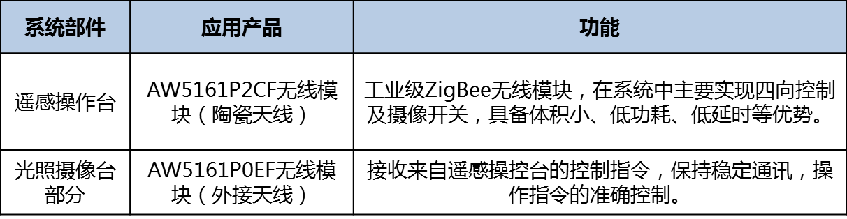 光照攝像臺(tái)則有進(jìn)行全方位位移、光照和攝像功能,直接通過視頻線連接到顯示器顯示,無線模塊集成在控制臺(tái)中,要求:接收靈敏度高、通訊穩(wěn)定、可使用天線而對(duì)體積無要求。
