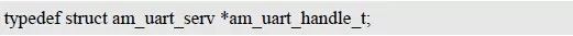 這些函數(shù)的返回值均為am_uart_handle_t 類型的UART 實例句柄,該句柄將作為UART通用接口中handle 參數(shù)的實參。類型am_uart_handle_t(am_uart.h)定義如下: