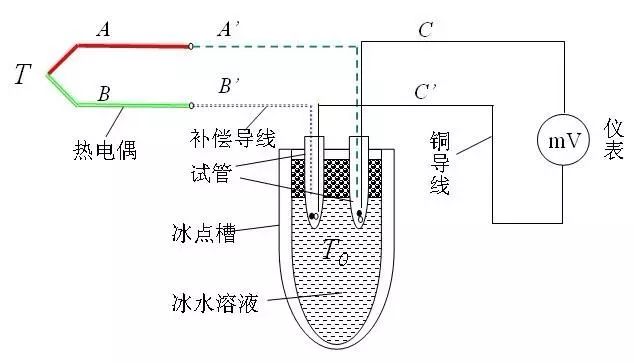 然而,這樣的方案看似完美,實則存在缺陷。因為熱端置于測量環(huán)境之后我們該如何保證冷端的“冷”呢?如果冷端離得太近也跟著熱了起來這樣的測量將毫無意義。通常來說熱電偶的冷端是在0度環(huán)境下標定的,真實測量環(huán)境要將此條件考慮進去才能盡量做到測量的準確。在物理方面,主要有以下幾種方法來進行冷端補償: