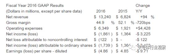 根據(jù)NXP的財(cái)報(bào)顯示,2016年,該公司的營(yíng)收為94.98億美元,與2015年相比,營(yíng)收增加了56.1%。毛利則為40.69億美元,毛利率高達(dá)42.8%。