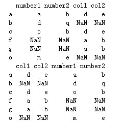 number1number2col1col2a a b d eb d q NaN NaNc o b d ef NaN NaN a bg NaN NaN a bo m e NaN NaN