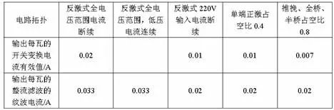 表1 各種開關(guān)變換器電路拓?fù)涞恼鳛V波的紋波電流和開關(guān)變換電流