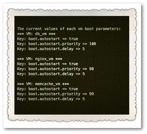 for v in boot.autostart boot.autostart.priority boot.autostart.delay