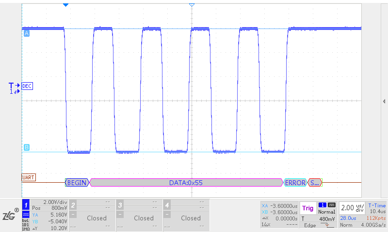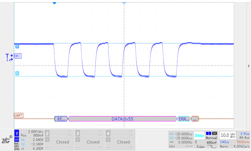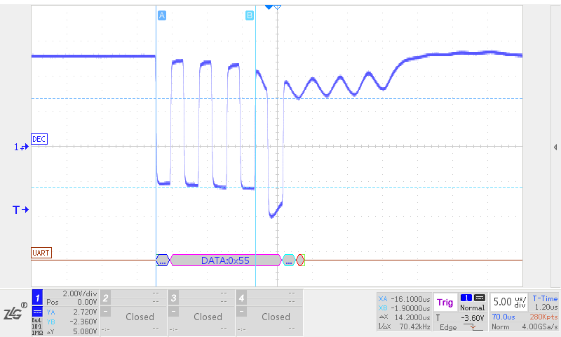 圖5 RSM485ECHT 1200m 115.2kbps 加終端電阻 首端波形