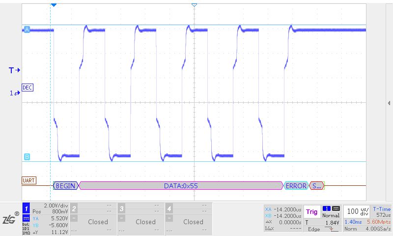 圖1 RSM485ECHT 1200m 500kbps不加終端電阻