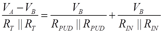 當(dāng)兩個模塊都處于接收狀態(tài)時,可以根據(jù)基爾霍夫電流定律對節(jié)點(diǎn)A和節(jié)點(diǎn)B列出下列公式:
