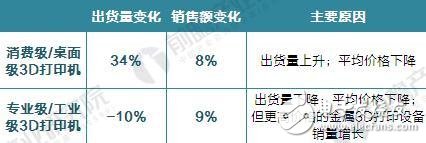 從銷售金額來看,兩類3D打印機的銷售金額都有所增長,但是推動增長的原因截然不同。個人/桌面級3D打印機銷售金額增長了8%,主要是得益于大幅上升的出貨量,這類打印機的加權(quán)平均銷售價格有所下降,從2015年的1302美元下降至2016年的1052美元,其中排名前兩位企業(yè)XYZprinting和Monoprice的加權(quán)平均價格小于500美元。